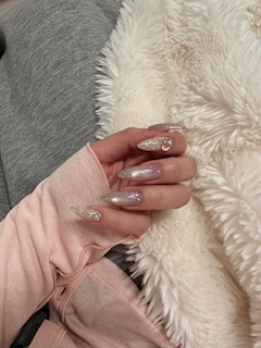 おはようございます! AJのまいです💗 見て! 今回のネイル💅 キラキラにしたよ! いつもより長めにした! パーツよく見たら 三日月の形入ってるの🌙 ネイルのパーツ見るの めっちゃ好きで 選ぶのワクワクする🥹 付けたいのいっぱいあったけど 今回は控えめに。 前回の高すぎたからね💦 長さだししてもらってるから いつも3時間弱かかってる。 そんなに長い時間 集中できるネイリストさん すごすぎるよね! まいは最近集中力がないです。 ここ数日うどんにハマってるの! プチっとうどんか 麺つゆにつけて食べるか! 冷凍うどんが万能すぎて いっぱいストックしてる! すぐ食べれるものが最高です。 ちゃんとしたご飯を 1人分作るのって 逆にお金かかるよね。 残り物でぱぱっと 作ったりするの苦手だから 色んな料理チャレンジできない。 決まった食材ばっかり買ってる。 ある食材で料理できるように なりたいです! お母さんとかほんとに 尊敬してる🥺 今日は店休日なので ゆっくりと休みます🫧